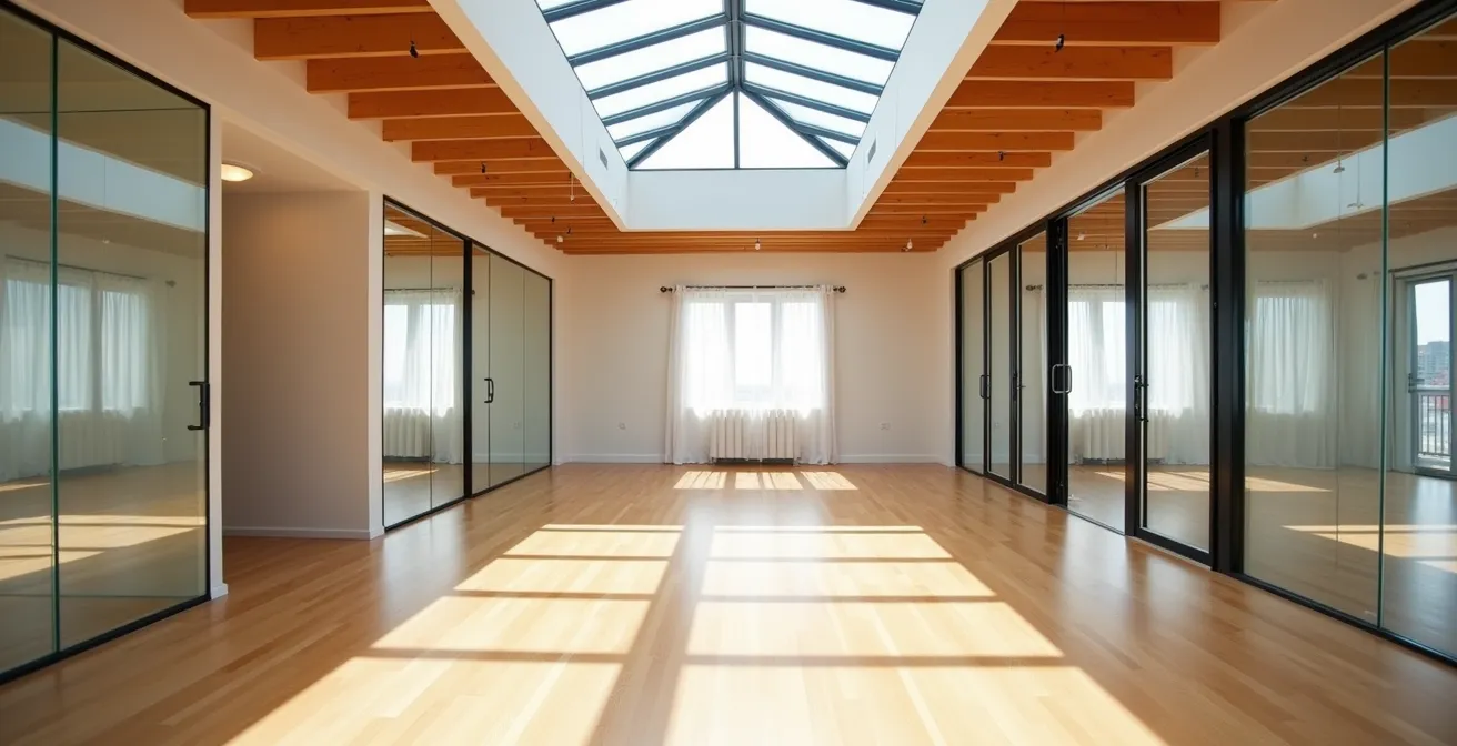 Si la lumière existe déjà dans une pièce adjacente, pourquoi ne pas lui ouvrir un passage ? Plutôt que d’abattre entièrement un mur, une solution plus subtile et élégante consiste à le « dématérialiser ». L’idée est de remplacer une partie ou la totalité d’une cloison opaque par une surface transparente, créant ainsi une porosité lumineuse entre les espaces. Vous séparez les fonctions sans bloquer le précieux flux de lumière naturelle.