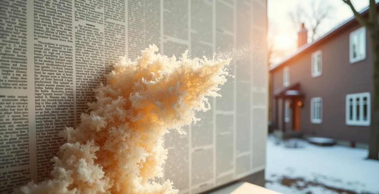 En tant qu’installateur passionné par les matériaux performants, je peux vous l’affirmer : le secret d’un confort absolu et d’économies réelles ne réside pas uniquement dans la valeur R affichée sur un emballage. Il se trouve dans les propriétés physiques de l’isolant : sa densité, qui crée une véritable forteresse contre les courants d’air, et sa masse thermique, qui agit comme un bouclier contre la chaleur. C’est précisément là que la ouate de cellulose, issue de simples journaux recyclés, change complètement la donne. Ce n’est pas seulement un choix vert, c’est un choix de performance technique supérieure, parfaitement adapté à notre climat contrasté.
